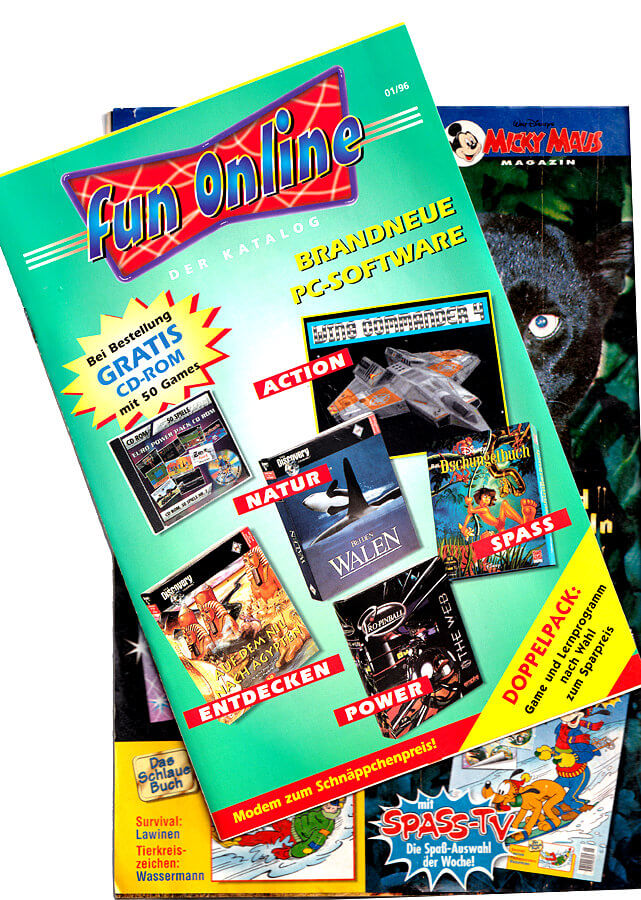 Katalogpreise (€): 2,00 Beilagen Brandfleck 1.00 Sammelkarten (Das Schlaue Buch) Werbeprospekt Fun Online mit Stickern 2.00